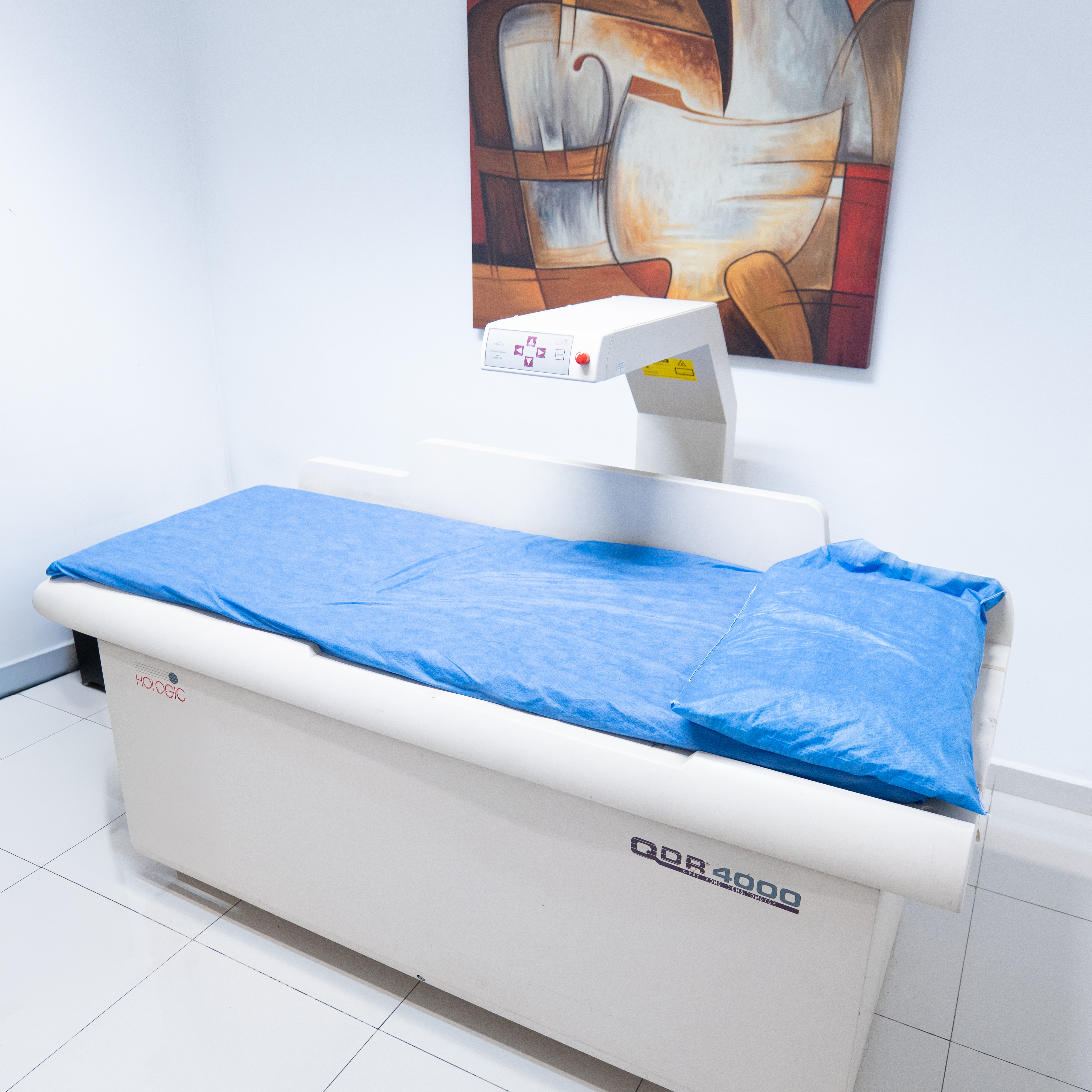 Estudio que mide la densidad ósea para detectar osteoporosis o pérdida de masa.